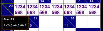 If a row has a sum of 16 over 2 squares and a column has a sum of 17 over 2 squares, the only possible values are 7-9 for the row and 8-9 for the column. Therefore, the only common value for the intersecting box is a 9. This strategy is best when starting off a puzzle.