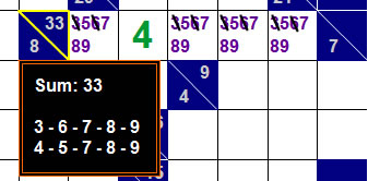 Another strategy that needs to be considered is that you notice the 2 sums that add up to 33: 3-6-7-8-9 or 4-5-7-8-9.